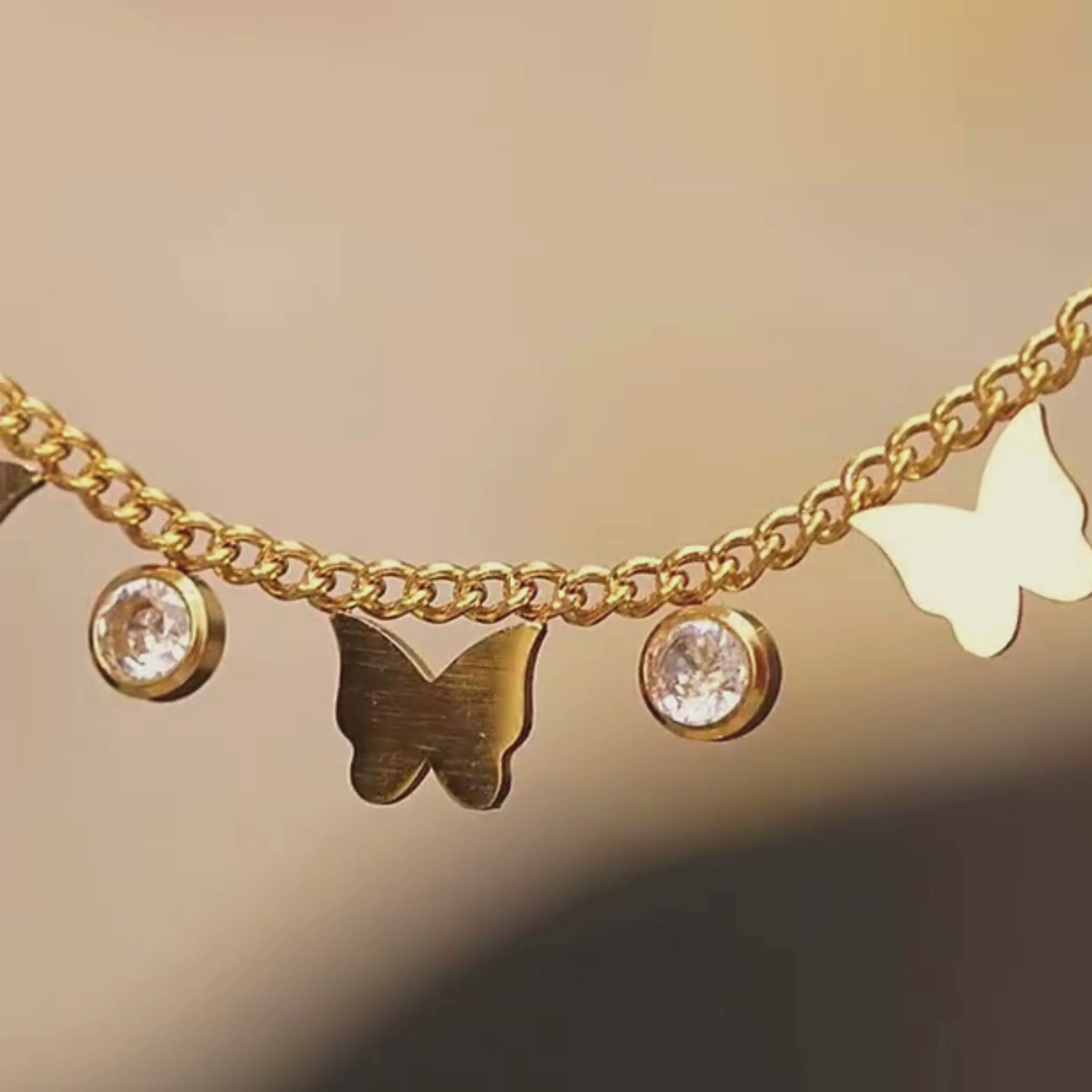 Feito para mulheres que querem beleza e praticidade no dia a dia, a Tornozeleira Borboleta Zircônia Ophelia une design atemporal, acabamento impecável e resistência real: você pode usar na academia, no banho, na praia ou no trabalho, sem precisar tirar.